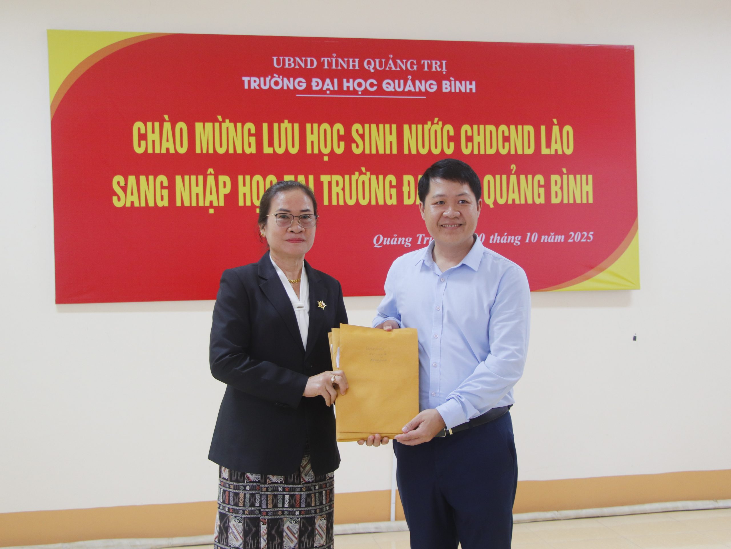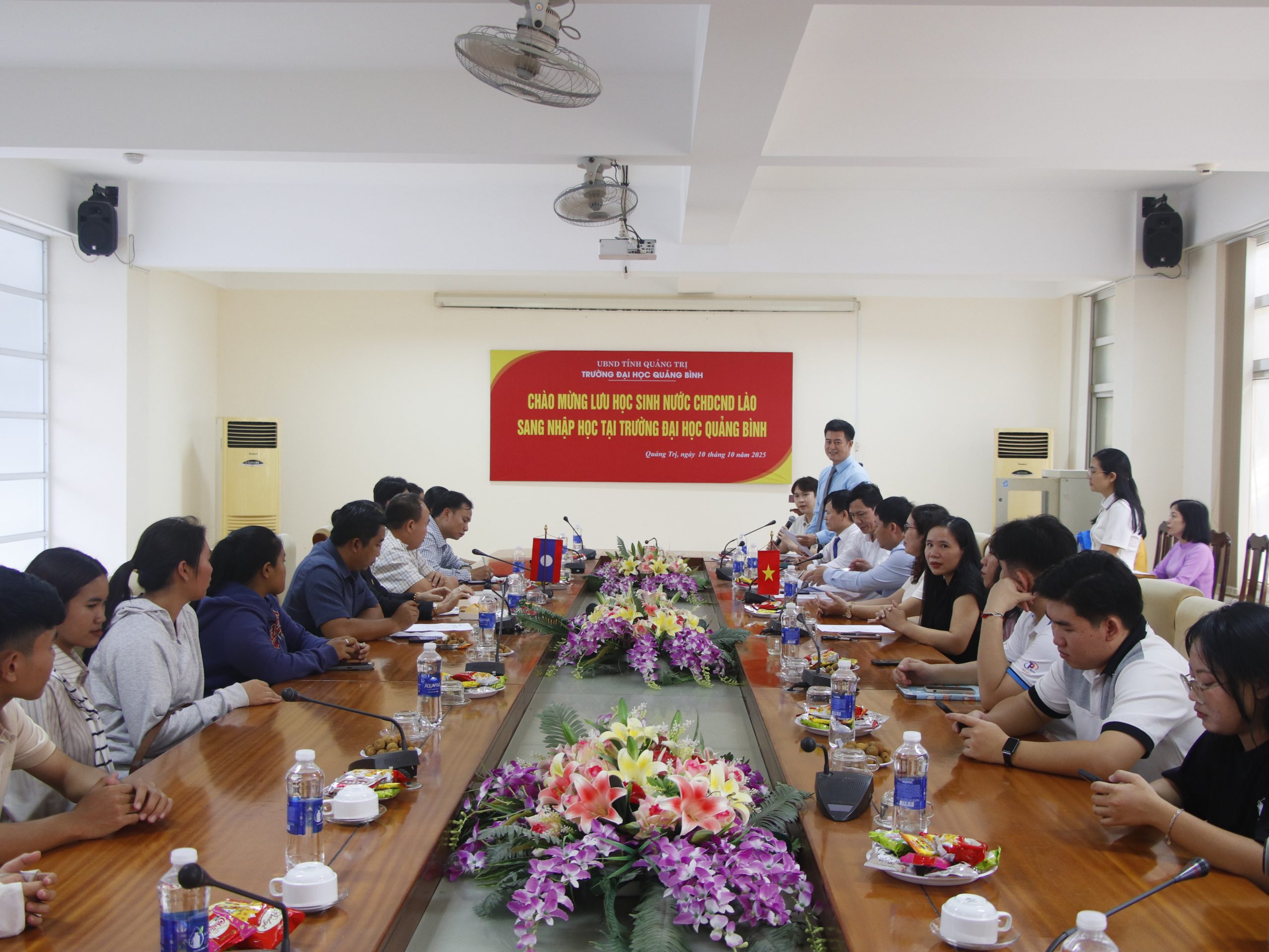 Chiều ngày 10/10/2025, Trường Đại học Quảng Bình đã tổ chức buổi đón tiếp lưu học sinh Lào đến nhập học đợt 1 theo kế hoạch số 755/KH-ĐHQB ban hành ngày 08/10/2025. Sự kiện diễn ra với không khí thân mật, ấm áp và đầy tình hữu nghị.