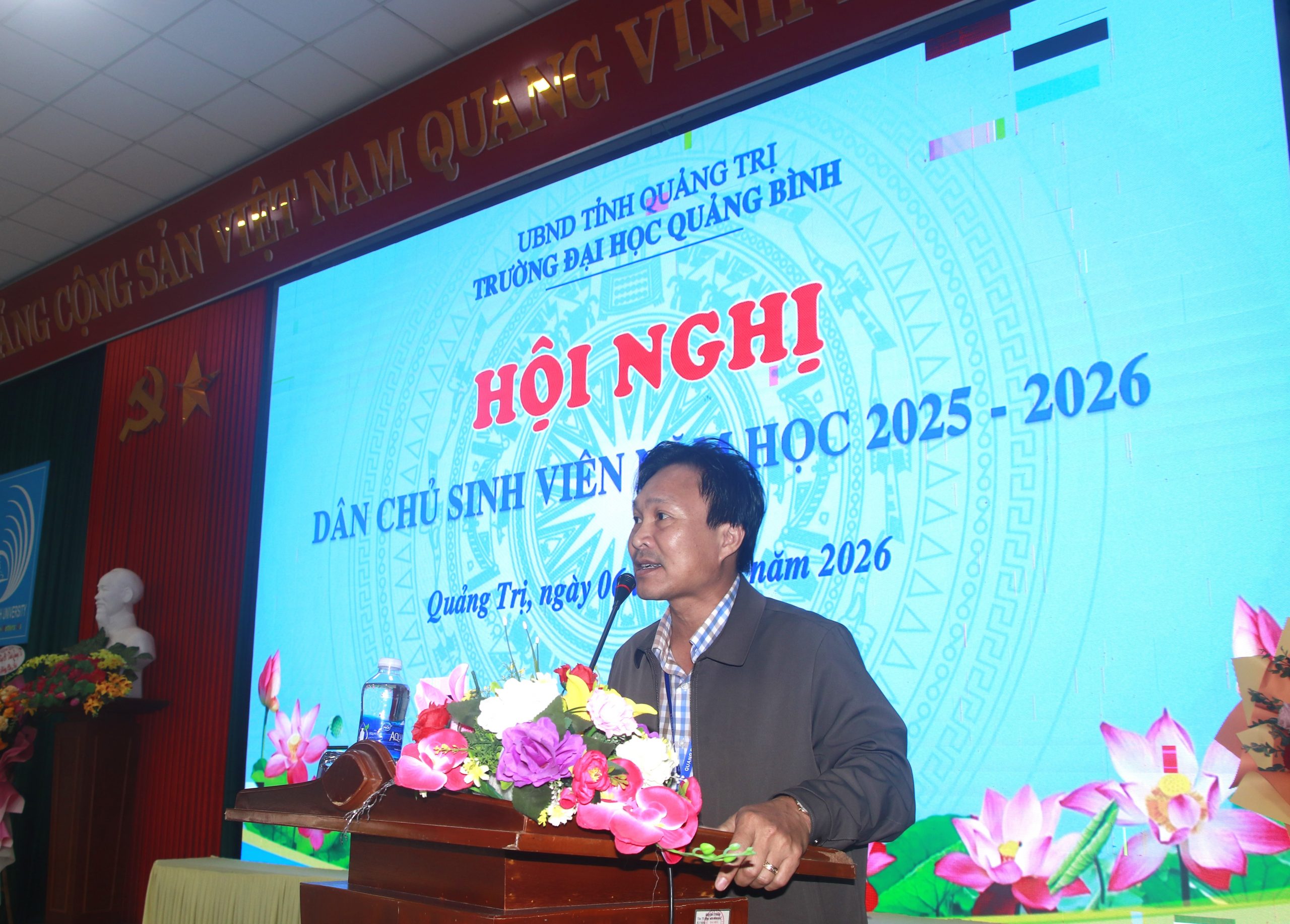 Sáng ngày 6/2/2026, tại Giảng đường B3, Trường Đại học Quảng Bình đã diễn ra Hội nghị dân chủ sinh viên năm học 2025 – 2026. Đây là hoạt động thường niên có ý nghĩa quan trọng, nhằm phát huy quyền dân chủ của người học, đồng thời tạo diễn đàn để sinh viên trao đổi thẳng thắn với Nhà trường về những vấn đề liên quan đến học tập, rèn luyện và đời sống.