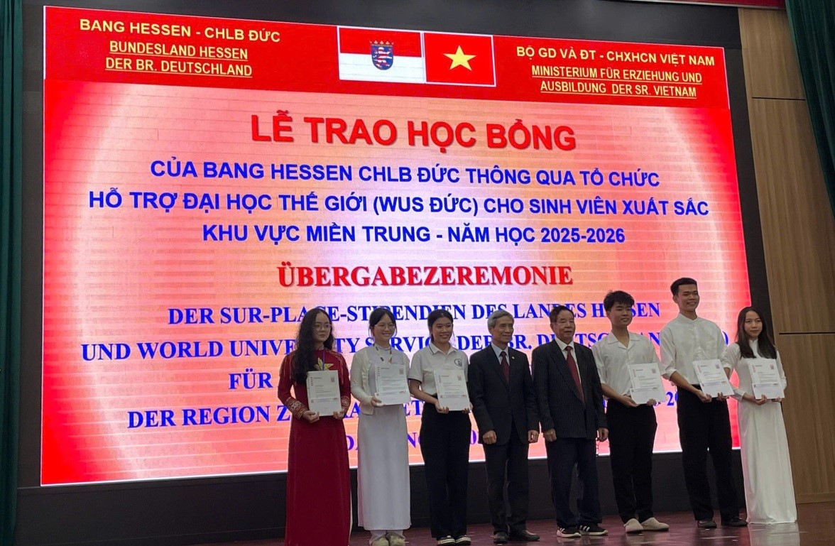 Ngày 20/3/2026, Đại học Đà Nẵng (ĐHĐN) phối hợp với Văn phòng Hessen tại Việt Nam tổ chức Lễ trao Học bổng của Bộ Khoa học và Nghệ thuật Bang Hessen CHLB Đức thông qua tổ chức Hỗ trợ Đại học Thế giới (WUS Đức) cho sinh viên khu vực miền Trung.