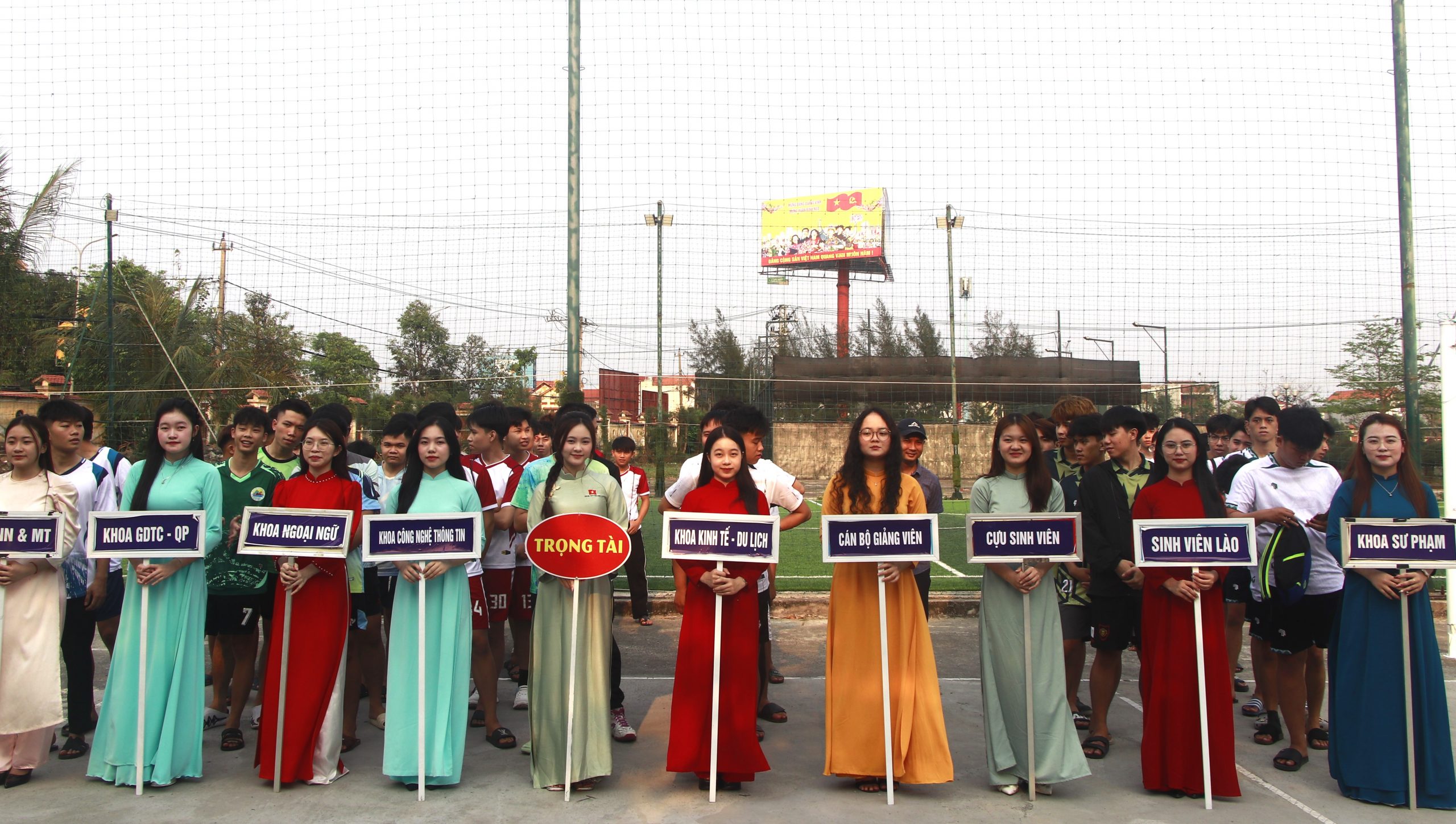 Buổi lễ vinh dự có sự tham dự của PGS.TS. Nguyễn Đức Vượng – Bí thư Đảng uỷ, Hiệu trưởng Nhà trường; TS. Võ Khắc Sơn – Phó Bí thư Đảng uỷ, Phó Hiệu trưởng Nhà trường; TS. Dương Thị Ánh Tuyết – Uỷ viên Ban Thường vụ Đảng uỷ, Phó Hiệu trưởng Nhà trường; TS. Nguyễn Phương Văn – Trưởng phòng Đào tạo và Quản lý sinh viên; ThS. Hoàng Anh Vũ – Bí thư Đoàn Thanh niên, Chủ tịch Hội Sinh viên; cùng đông đảo cán bộ, giảng viên và sinh viên đến cổ vũ, tạo nên bầu không khí sôi nổi, hào hứng.