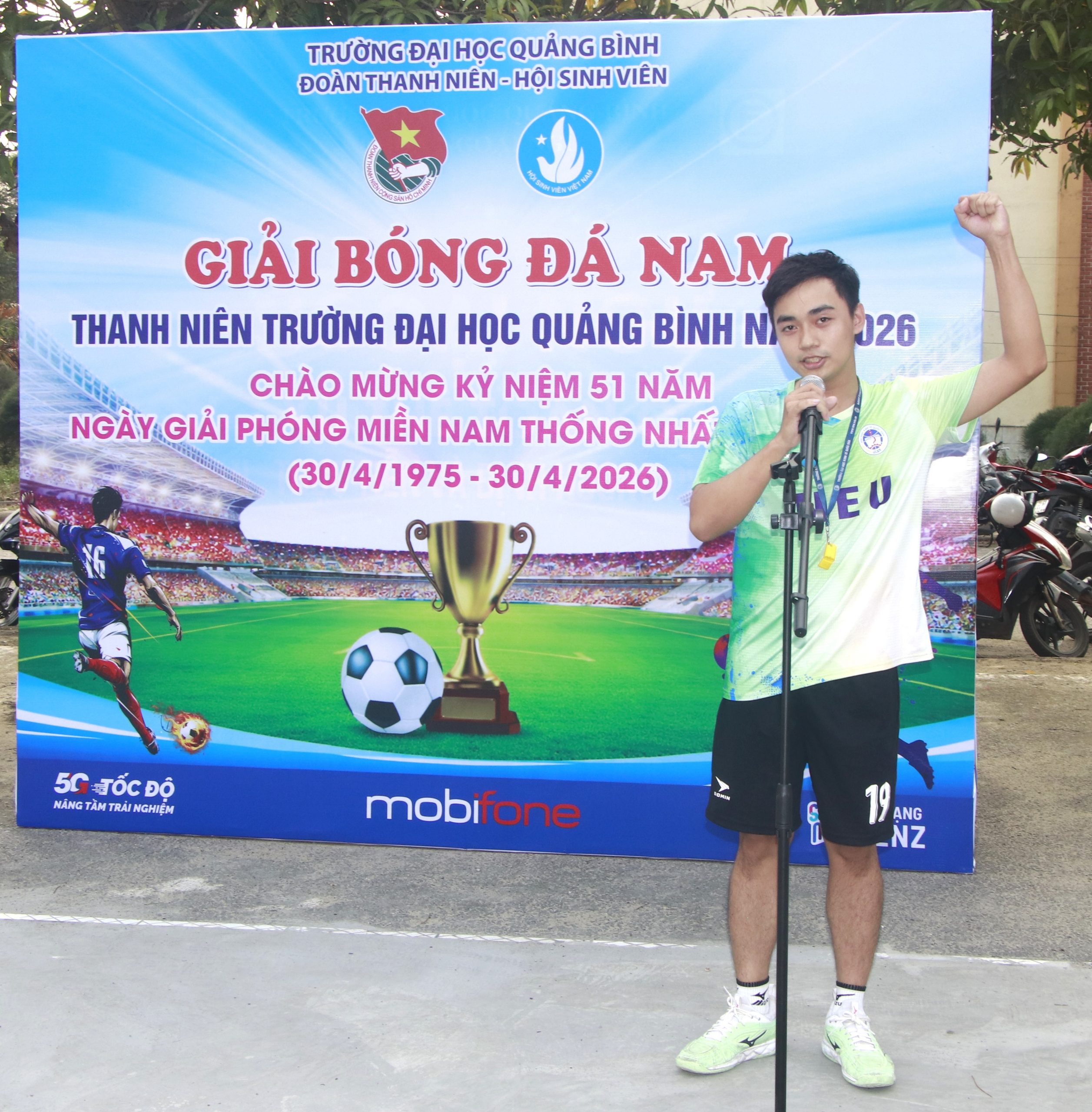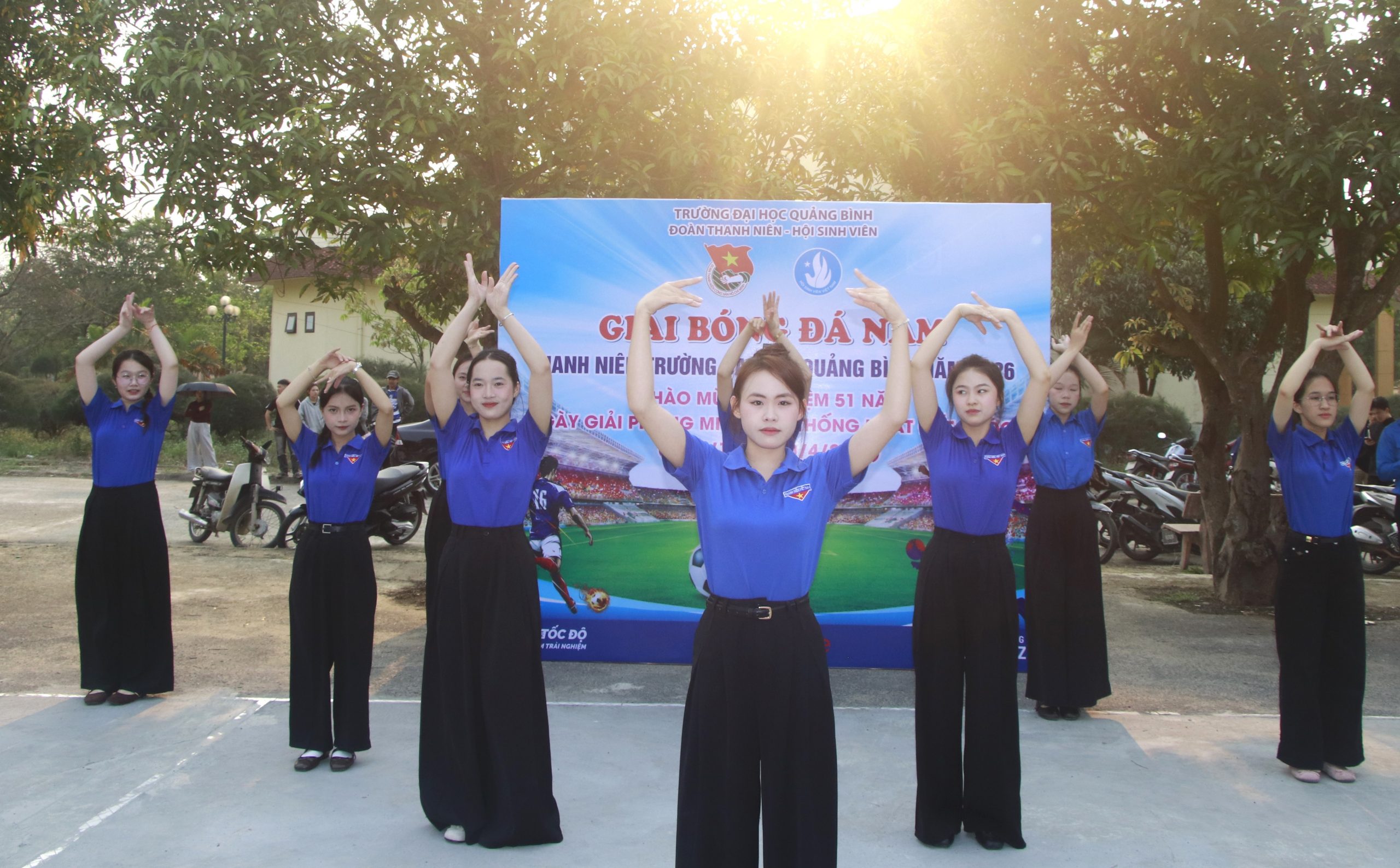 Chiều ngày 14/4/2026, tại sân bóng đá mini Trường Đại học Quảng Bình, Đoàn TNCS Hồ Chí Minh Nhà trường đã long trọng tổ chức Lễ khai mạc Giải bóng đá Nam thanh niên năm 2026. Đây là hoạt động thiết thực chào mừng kỷ niệm 51 năm Ngày Giải phóng miền Nam, thống nhất đất nước (30/4/1975 – 30/4/2026), đồng thời tiếp tục hưởng ứng phong trào “Rèn luyện sức khỏe theo gương Bác Hồ vĩ đại” và xây dựng môi trường học đường năng động, lành mạnh.