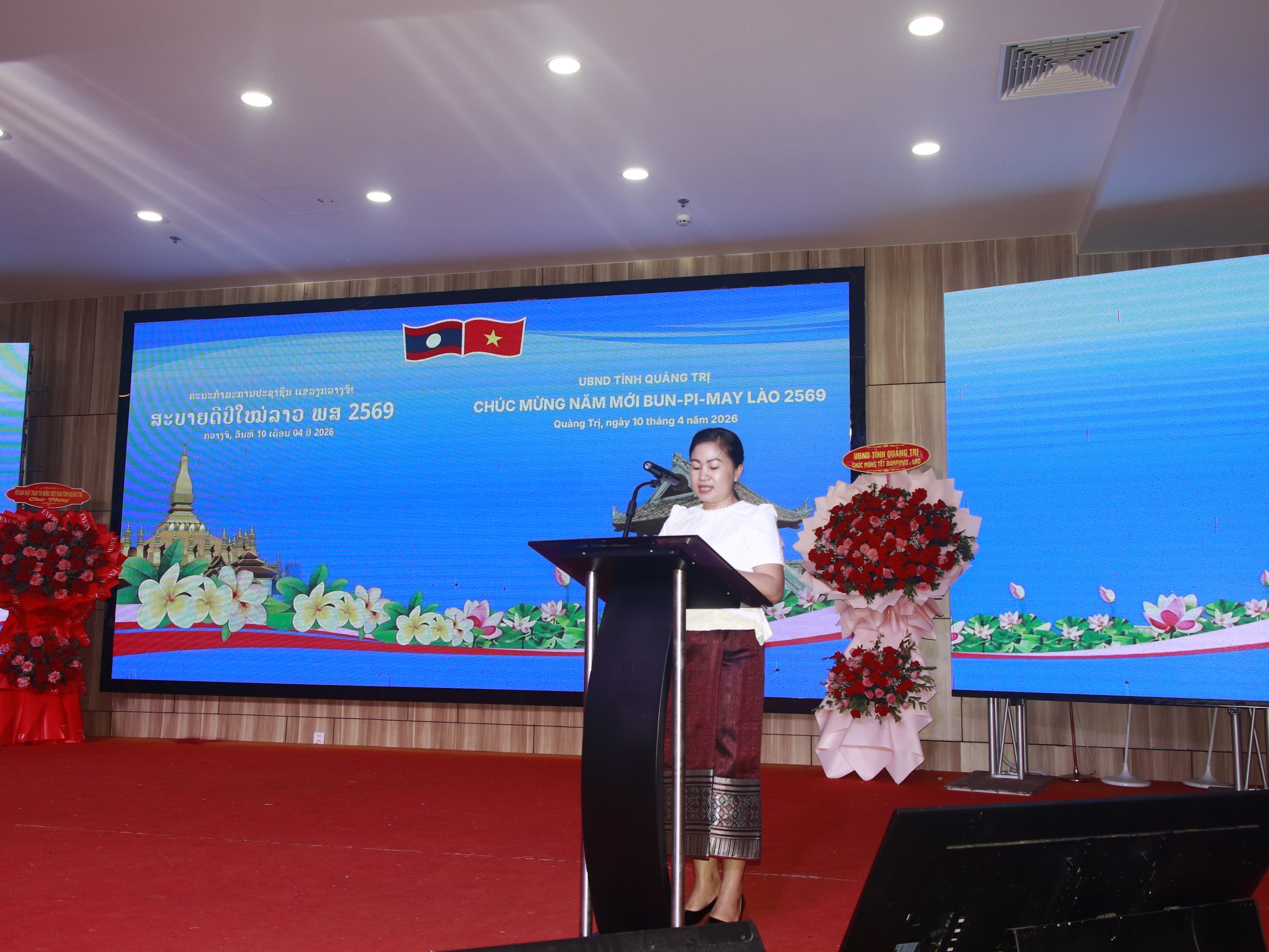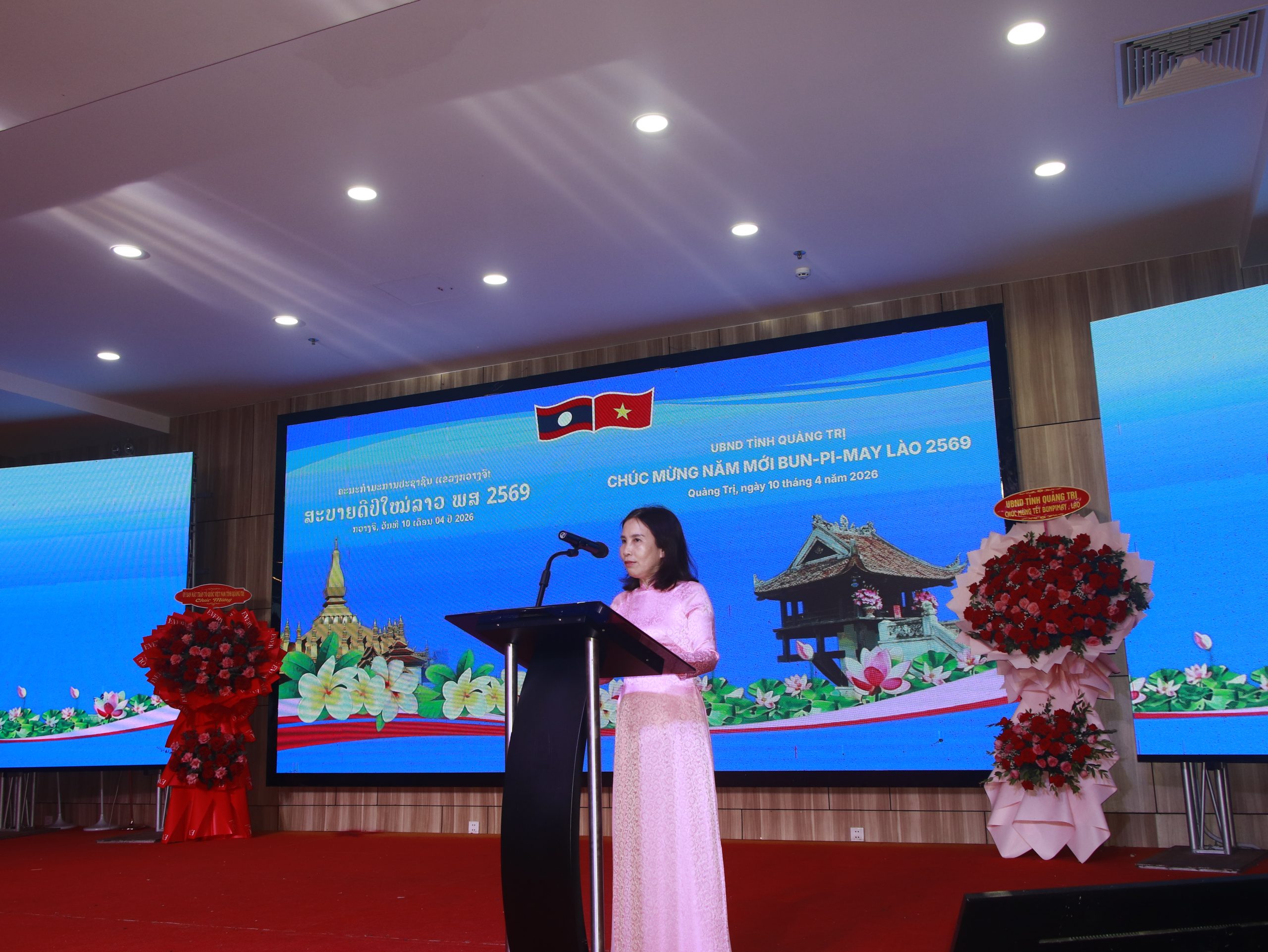 Bà Nguyễn Thị Hương Giang – Phó Giám đốc Sở Ngoại vụ tỉnh Quảng Trị gửi lời chúc mừng năm mới tới cán bộ và lưu học sinh Lào, nhấn mạnh tỉnh Quảng Trị luôn coi trọng hợp tác đào tạo nguồn nhân lực, xem đây là nền tảng để củng cố và phát triển mối quan hệ hữu nghị đặc biệt giữa hai dân tộc.